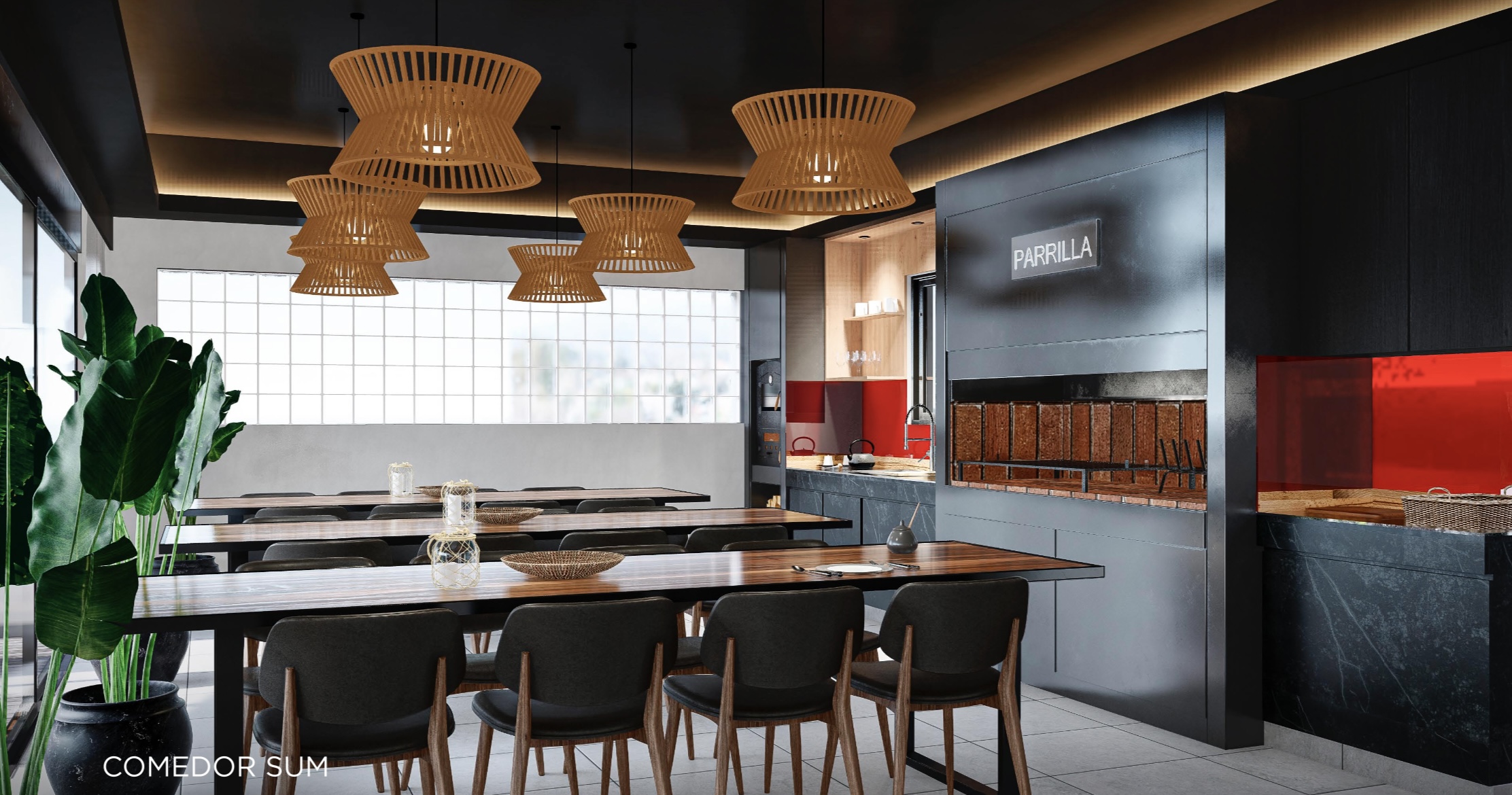 SUM exclusivo equipado con cocinas amplias, asadores, terraza con jacuzzi solar y solárium.